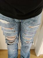 Interessant wäre auch, wie die Jeans auf der Party bearbeitet wurde