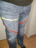Könnte bei der dunklen und außer bei den Rissen doch noch sehr stabilen Jeans ein längeres Unterfangen werden. Da kann ich keine schnellen Ergebnisse versprechen, und der Spaß könnte sich auch in Grenzen halten