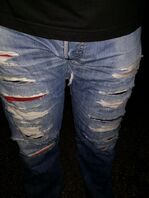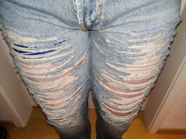 Fand das passt super, das blaue Latex und die helle zerfetzte Jeans