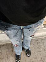 nach dem die Jeans nun wieder aus den tiefen des Schrankes hervorgeholt war zog ich sie die nächsten Tage öfters mal Abends an wenn ich mich wieder mit ein paar anderen über Jeans und andere geile Klamotten im Forum austauschte. Sie war einfach super bequem durch den schön weichgetragenen Jeansstoff welche auch schon ordentliche Auswaschungen aufzeigte. Auf den Oberschenkeln war auch schon eine dünne Stelle, welche mir ins Auge fiel. 😉. So trug ich die Jeans die nächsten Wochen etliche Abende zu Hause und je länger ich sie trug je weicher fühlte sie sich an. Eines Abends während eines regen Austausches zupfte ich eher zufällig am Oberschenkel herum und ohne das ich es direkt merkte wurde aus der dünnen Stelle ein kleiner neckischer Riss. Als ich es bemerkte schrieb ich, ich hätte meine Jeans versehentlich etwas zerstört und was die anderen davon hielten? Aber die Reaktion war ein wenig anders wie erwartet. Ich wurde beglückwünscht das sie einen weiteren Riss bekam und es wurden Stimmen laut ich solle den Riss noch ein wenig vergörßern. Erst war ich etwas schockiert, aber die Stimmung war so super und so ließ ich mich dazu anstacheln an dem Riss am Oberschenkel noch etwas weiter zu zupfen. Was ihn natürlich nicht unverändert ließ. Aber irgendwie war es ein geiler Kick und es sah auch super aus. Die weißen Fäden bei Jeans die sichtbar werden, wenn der Stoff dünn wird, fand ich immer schon sehr geil. Und so ging dann ein toller Abend zu Ende mit einem weiteren Riss in der saubequemen alten Jeans ![]()